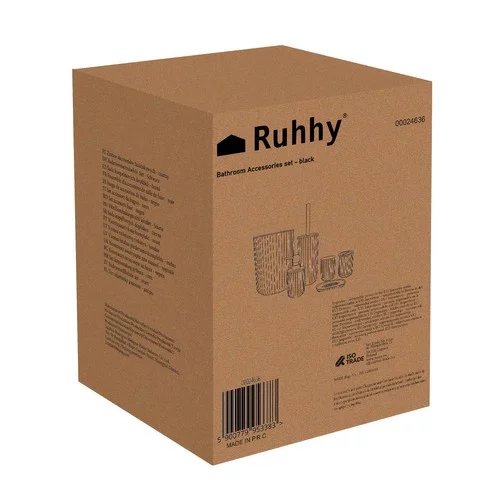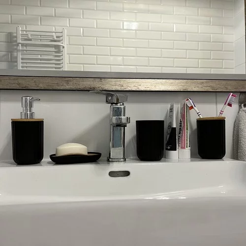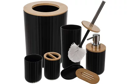 Set de 6 accesorii pentru baie de înaltă calitate combină funcționalitatea, eleganța și designul modern. Culoarea neagră cu suprafață texturată și detalii din bambus conferă băii un stil și asigură în același timp confortul și igiena utilizării. Fiecare element al setului este conceput pentru a fi practic, durabil și ușor de întreținut, ceea ce face ca setul să fie o alegere ideală pentru utilizarea zilnică sau ca cadou.