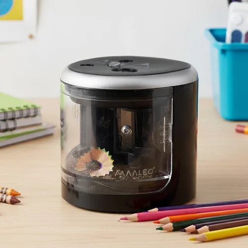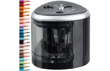 Răzătoarea electrică compactă cu două dimensiuni ale orificiilor facilitează munca zilnică acasă, la școală și la birou. Ascuțirea rapidă și precisă fără ruperea vârfului economisește timp și creioane, în timp ce rezervorul transparent menține locul de muncă curat. Potrivită pentru creioane școlare obișnuite și mai groase de artă și, datorită lamelor interschimbabile, oferă o durată lungă de viață.