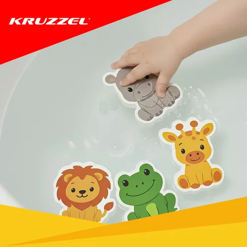 Accesorii distractive și sigure pentru baie, care transformă fiecare baie zilnică într-o activitate educativă și jucăușă. Setul de animale din spumă Kruzzel susține imaginatia, motricitatea fină și recunoașterea culorilor și formelor, în timp ce organizatorul practic cu ventuze menține baia curată și jucăriile se usucă rapid. Ideal pentru mâinile mici și ca un cadou original.