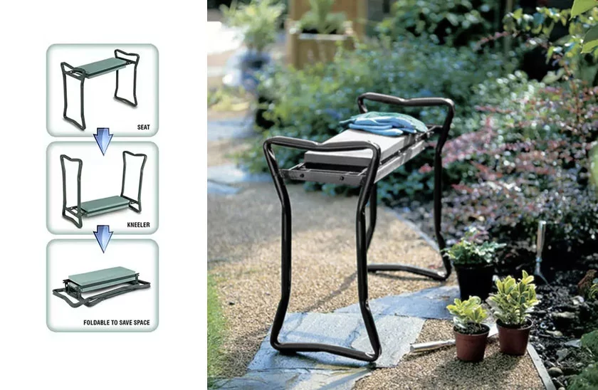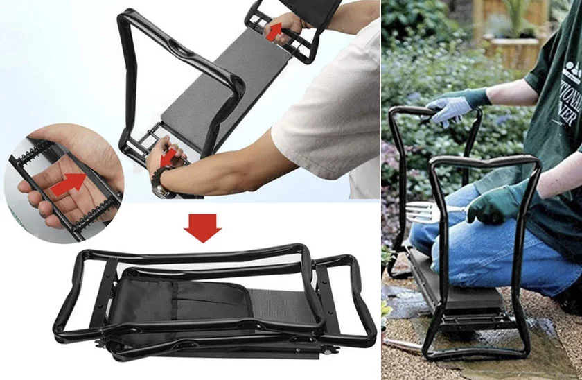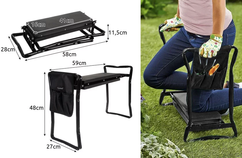 Ușurați-vă munca în grădină și bucurați-vă de confort. Acest ajutor practic este ideal pentru orice grădinar – fie că sunteți pasionat, senior sau cultivator cu experiență. Fără genunchi sau spate dureros! Datorită designului inteligent, banca se transformă rapid într-un scaun confortabil. Spuma moale EVA protejează genunchii în timpul lucrului și oferă confort chiar și în timpul șederii prelungite. După muncă, vă puteți așeza și relaxa.