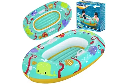 Permiteți copilului dumneavoastră să se joace în siguranță și distractiv pe apă cu această barcă gonflabilă ușoară și rezistentă. Mânerele practice asigură stabilitate, locul pentru atașarea unei sfori permite tragerea în siguranță pe suprafața apei, iar materialul din vinil rezistent garantează multe ore de distracție fără griji. Datorită valvei de siguranță, aerul rămâne în interior după umflare, iar designul colorat atrage atenția copiilor.