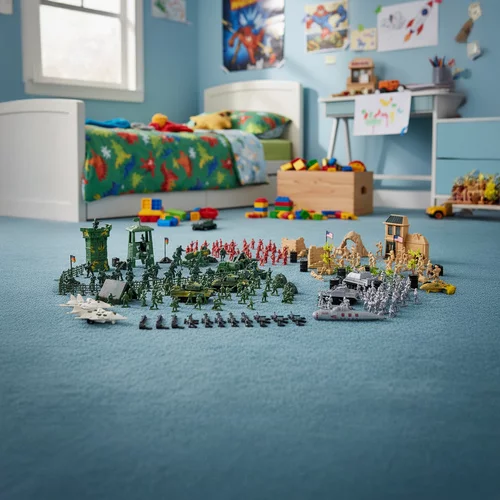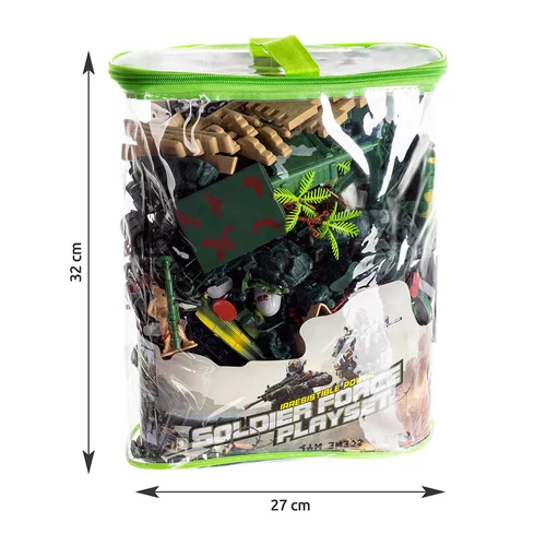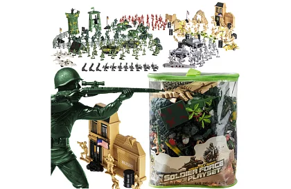 Set de soldați și accesorii militare permite un joc realist, dezvoltând creativitatea, gândirea strategică și imaginatia. Figurinele sunt solide și rezistente, fabricate din plastic de calitate rezistent la căderi și la jocuri intense. Cazul de depozitare practic facilitează stocarea și transportul setului oriunde.