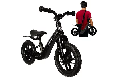 Bicicleta ușoară este ideală pentru copii de la 2 ani și susține dezvoltarea echilibrului și a motricității. Mânerele antiderapante, roți de 12" din spumă EVA, aripa și un cadru din magneziu asigură stabilitate și o plimbare confortabilă. Înălțimea reglabilă a șeii permite ca bicicleta să „crească” odată cu copilul, iar cu cureaua de umăr inclusă, bicicleta poate fi transportată cu ușurință. Montajul este rapid și simplu datorită manualului și setului de unelte incluse.
