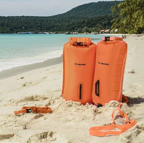 Bojă de înot gonflabilă 2 în 1 asigură siguranța și confortul în timpul înotului în apă deschisă. Datorită formei ergonomice și a curelei ajustabile, se adaptează taliei și nu limitează libertatea de mișcare, astfel încât înotul este confortabil și sigur.