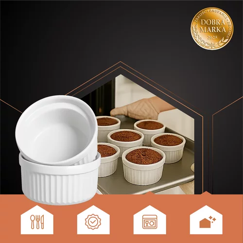 Set 6 boluri rezistente la căldură este ideal pentru coacerea preparatelor, deserturi și aperitive. Dimensiunea practică și designul elegant permit servirea direct pe masă, în timp ce ceramica rezistentă suportă temperaturi ridicate în cuptor și cuptor cu microunde. Culoarea albă clasică și dimensiunile compacte asigură un accesoriu indispensabil pentru orice bucătărie.