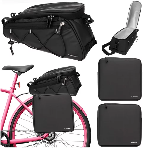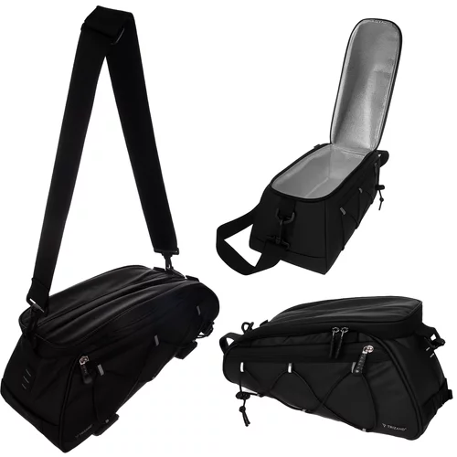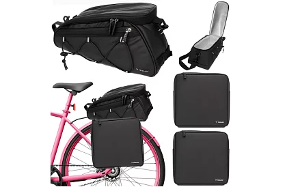 Practică geanta pentru bicicletă cu un volum de până la 16 litri permite transportul confortabil al hainelor, mâncării, uneltelor sau documentelor. Sacul central cu funcție termică menține temperatura alimentelor și băuturilor, ideal pentru pique-niques și excursii cu bicicleta. Geanta poate fi purtată pe umăr, părțile individuale se pot atașa ușor la suport cu ajutorul velcro-ului și carabinelor. Construcția rezistentă la apă și elementele reflectorizante asigură siguranța și fiabilitatea chiar și pe ploaie sau noaptea. Gențile sunt aprobată pentru contactul cu alimentele, astfel încât să transporte în siguranță mâncarea.
