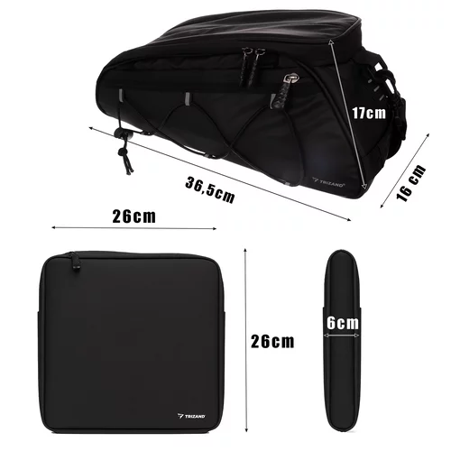 • Dimensiunile sacului central: 16 × 36,5 × 17 cm