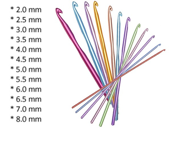 • Dimensiuni: dimensiunile croșetelor 2–8 mm (2, 2,5, 3, 3,5, 4, 4,5, 5, 5,5, 6, 6,5, 7, 8 mm)