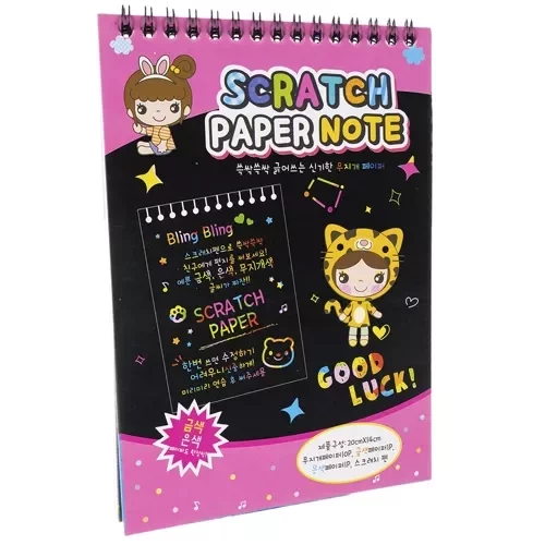 Distractiv caiet de zgâriere, ideal pentru călătorii lungi cu mașina, așteptând la medic sau alte momente când este nevoie să ții copilul ocupat. Jocul captează atenția și timpul trece mai repede.
