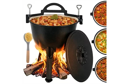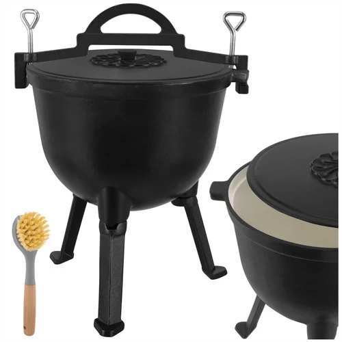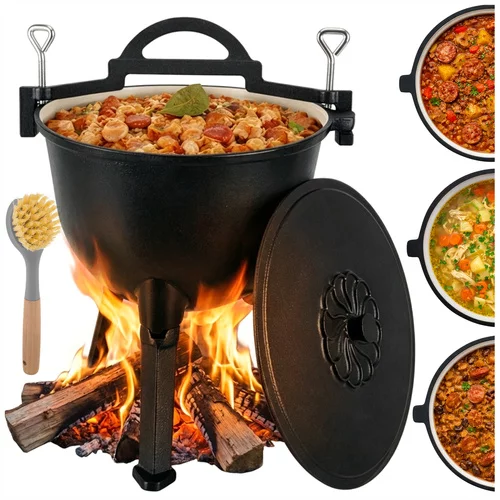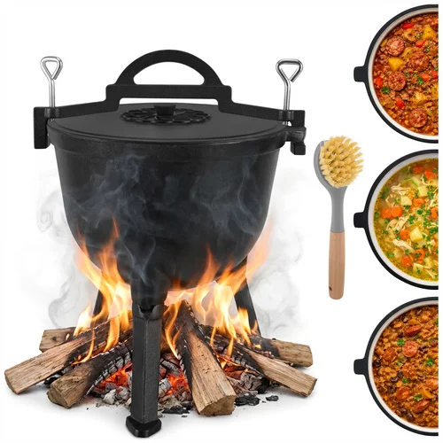 Gătitul pe foc poate fi ușor și sigur cu un cazan din fontă de 10 litri, care oferă o distribuție uniformă a căldurii și o rezistență ridicată la temperaturi. Interiorul smălțuit facilitează curățarea și elimină necesitatea impregnării după fiecare utilizare. Ideal pentru prepararea de mâncăruri consistente la camping, în șemineu sau în grădină, cazanul combină funcționalitatea cu manevrabilitatea confortabilă datorită picioarelor detașabile și a mânerului practic.