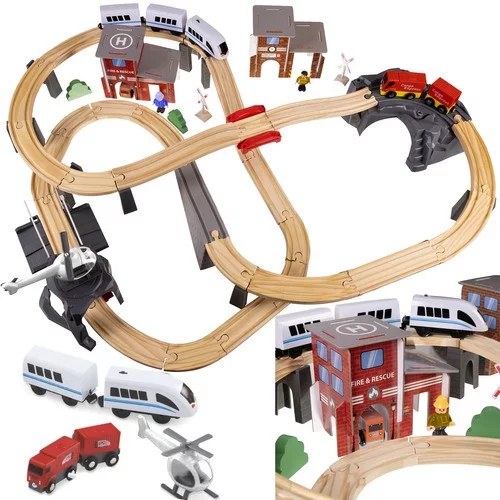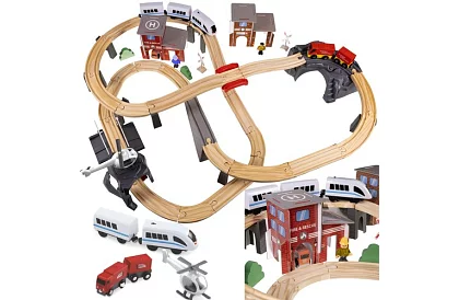 • Include tren personal, elicopter, camion cu remorcă, camion de pompieri, figurine și accesorii