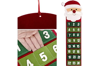 • 24 de buzunare: conține 24 de compartimente, care îmbogățesc numărătoarea inversă zilnică până la Crăciun