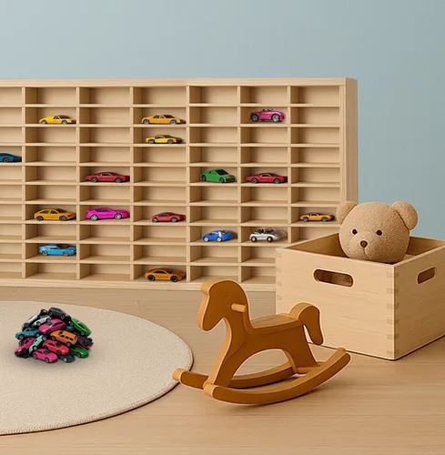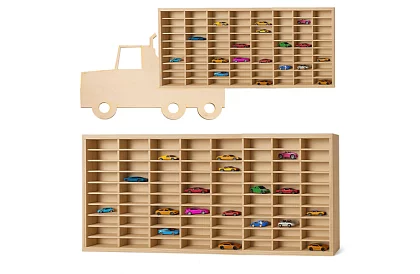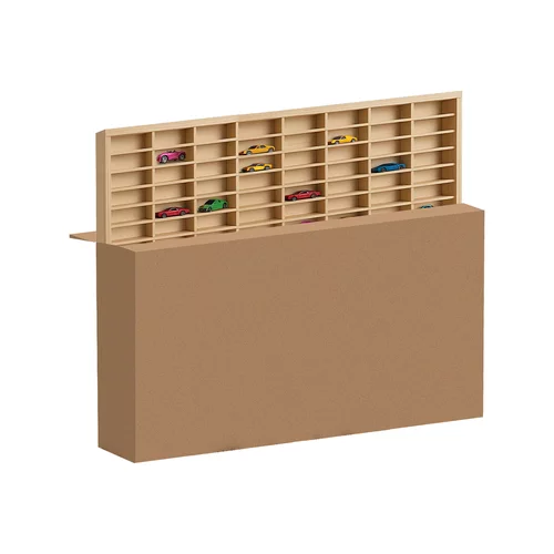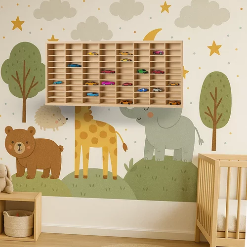 Organizator practic și decorativ permite expunerea sigură și clară a întregii colecții de mașinuțe. Fiecare compartiment are locul său, ceea ce facilitează menținerea ordinii și în același timp motivează copiii să colecționeze. Raftul este proiectat având în vedere siguranța și calitatea, fiind potrivit și pentru cei mai tineri utilizatori.