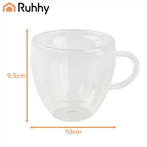 Paharul cu interior în formă de inimă evidențiază frumos culoarea băuturii, pereții dubli oferă izolație termică, ceea ce face ca cafeaua fierbinte să nu ardă mâinile și băuturile reci să rămână mai mult timp reci. Fabricat din sticlă borosilicată, este ușor, rezistent și potrivit pentru utilizare zilnică. Un accesoriu elegant pentru bucătărie și o idee grozavă pentru un cadou original.