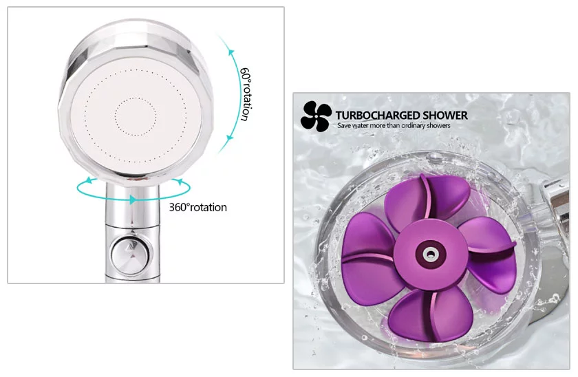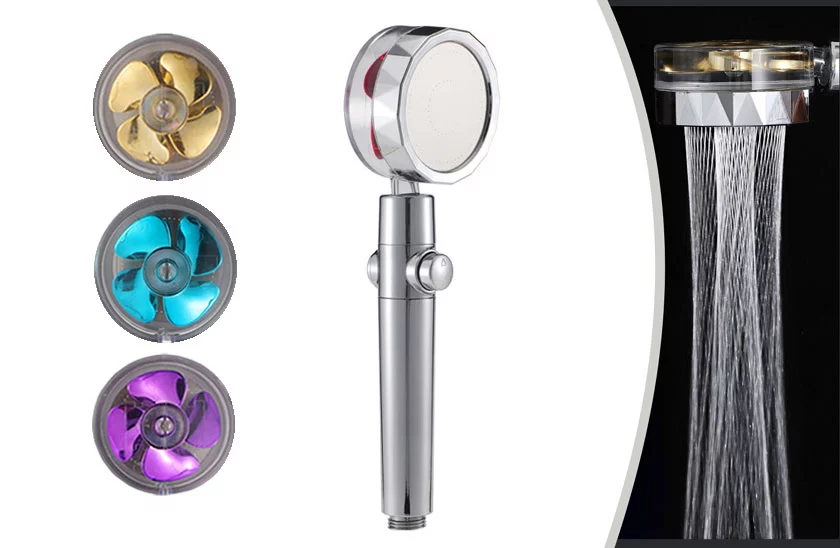 Capul de duș original TurboShower dispune de un mic ventilator în interior. Capul oferă un debit de apă mai mare și o presiune mai bună decât capetele de duș convenționale. Acest cap de duș impresionează și prin jetul de apă neobișnuit, care seamănă cu un fascicul în spirală. Jetul de apă poate fi oprit prin apăsarea butonului "STOP", ceea ce se poate realiza cu o singură mână, pentru ca cu cealaltă mână vă șamponați confortabil părul. Datorită numărului mare de duze special concepute, puteți economisi până la 30% apă pe an. Bineînțeles că acest lucru poate avea un efect vizibil asupra facturilor la apă.