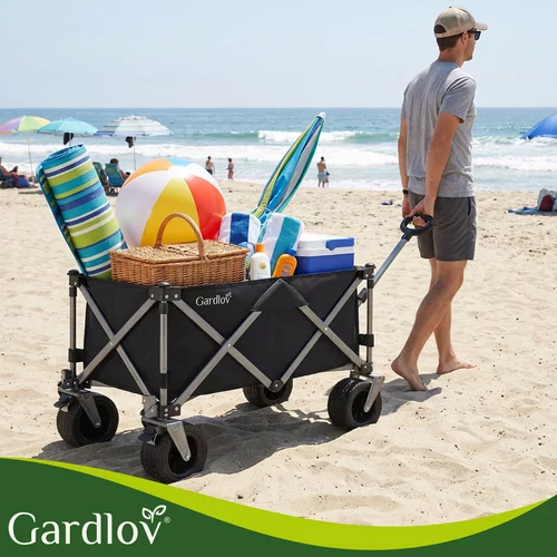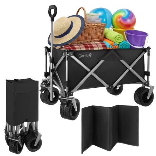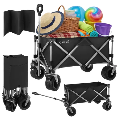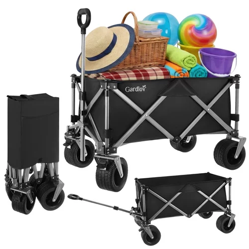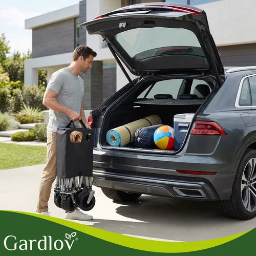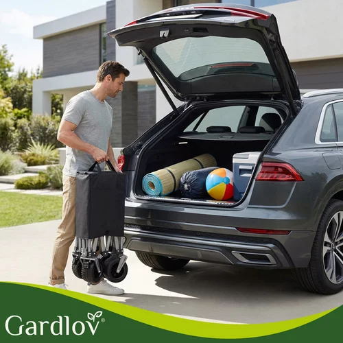 Un ajutor practic pentru grădină, plajă și camping facilitează transportul obiectelor grele și voluminoase fără efort inutil. Datorită capacității de până la 200 kg și unui volum mare de 150 litri, poate transporta totul, de la materiale de grădinărit până la echipamente de plajă. Structura pliabilă permite o pliere rapidă și o depozitare convenabilă în portbagajul mașinii sau în spațiul de depozitare.