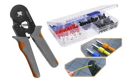 Clește de crimpare de înaltă calitate pentru capetele izolate și neizolate de dimensiuni 0,25 - 10 mm². Sistemul de prindere pe patru laturi asigură confortul și durabilitatea în utilizare. Pachetul conține 500 de capete de diferite dimensiuni, utile nu doar profesioniștilor, dar și meșteșugarilor amatori. Un instrument indispensabil pentru oricine lucrează cu instalații electrice sau reparații!