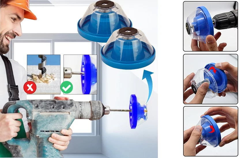 Trebuie să perforați o gaură în perete, dar sunteți îngrozit de mizeria care va urma? Avem o soluție foarte simplă! Acest adaptor ingenios care captează tot praful în interiorul unui recipient. Așezați pur și simplu colectorul special pe locul unde veți perfora. Bormașina va pătrunde în același timp prin orificiul din colector, până în perete. De restul se ocupă un recipient care reține toate particulele de praf din timpul perforării și păstrează totul curat împrejur.