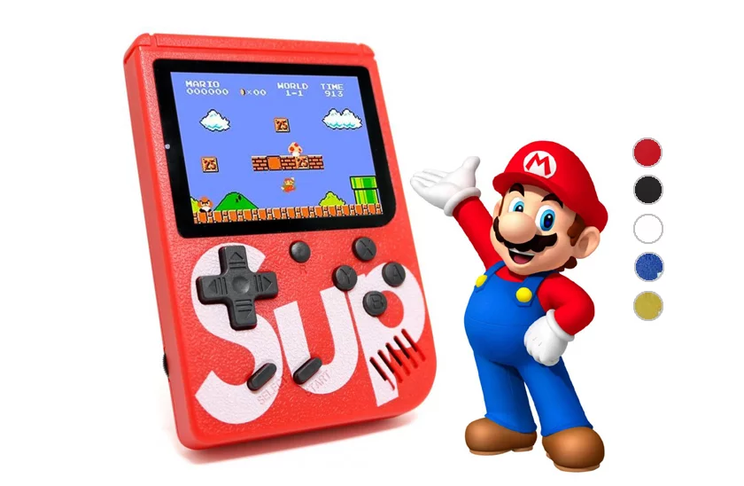 Consolă digitală de jocuri 400 in 1 SUP GameBox, cu display color de 2,4 inci. Bucurați-vă de multă distracție cu consola manuală de jocuri. Consola manuală de jocuri are dimensiuni ideale, se potrivește în buzunar sau în rucsac, astfel încât să o puteți lua oriunde.