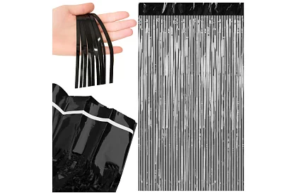 Un cortină decorativă lucioasă stilată va adăuga un efect „wow“ oricărei sărbători. Folia neagră cu franjuri este ideală ca fundal fotografic, decor pentru intrarea în cameră, pe perete sau pe scenă. Se potrivește perfect pentru Revelion, aniversări, Halloween, petreceri de burlaci, nunți sau alte evenimente tematice. Bandă adezivă permite o montare rapidă și ușoară – trebuie doar să o atașați și decorul festiv este gata.