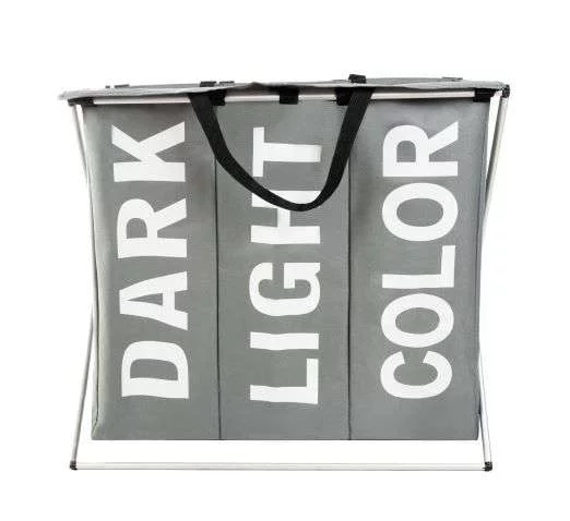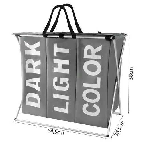 Coșul spațios și practic pentru rufe vă va facilita sortarea rufelor murdare încă de la început. Datorită celor trei compartimente separate, puteți separa rufele întunecate, deschise și colorate și implica și ceilalți membri ai gospodăriei. Interiorul impermeabil protejează partea exterioară a coșului de murdărie, iar cadrul solid asigură stabilitatea. Datorită combinației moderne de alb și gri, se va integra stilat în orice interior.