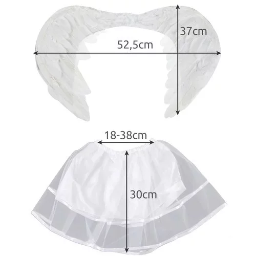 Transformați-vă copilul într-un înger frumos cu acest costum elegant. Fusta cu două straturi cu elastic și aripile albe delicate din pene creează o ținută perfectă pentru un spectacol de Crăciun, carnaval sau petrecere tematică. Costumul nu doar că arată minunat, dar susține și jocul, imaginația și bucuria de a se deghiza.