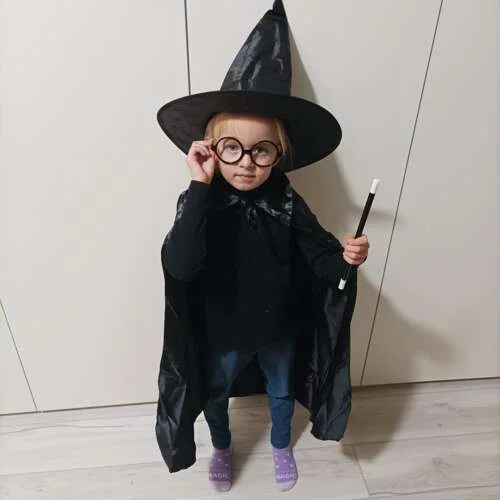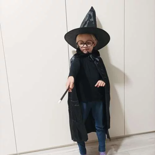 Costumul magicianului transformă orice copil într-un mic vrăjitor. Pelerina neagră adaugă mister și eleganță, pălăria înaltă surprinde prin desfășurarea sa efectivă, iar bagheta magică împreună cu ochelarii rotunzi completează perfect figura magică. Ideal pentru petreceri cu costume, spectacole de teatru sau jocuri acasă, când fantezia nu cunoaște limite.