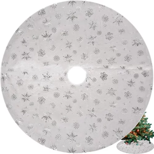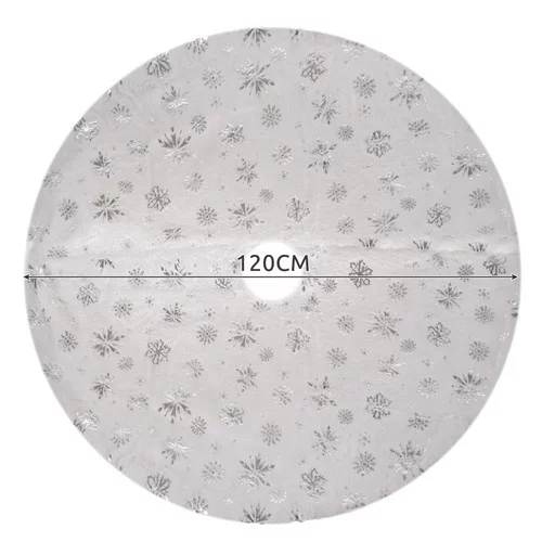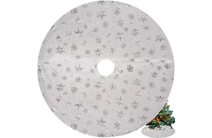 Covorul pentru bradul de Crăciun aduce o bază decorativă și practică pentru decorarea festivă. Stelele argintii și fulgii de zăpadă imprimate creează o atmosferă de iarnă și adaugă bradului și camerei un farmec. Materialul moale și pufoș permite aranjarea confortabilă a cadourilor și ornamentelor, protejează în același timp podeaua și facilitează curățenia, ceea ce face covorul un accesoriu practic și estetic pentru decorarea de Crăciun.