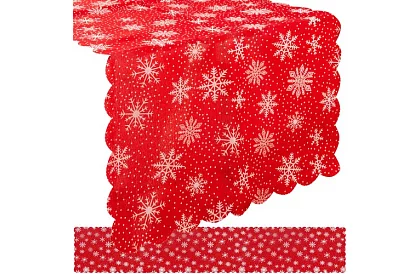 • Ornamentație: fulgi de zăpadă albi și puncte, accesoriu elegant pentru fața de masă albă