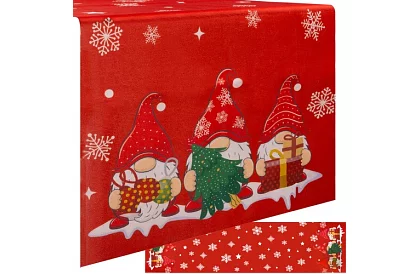 Culoarul oferă atmosferă festivă și va face fiecare interior mai confortabil. Modelul delicat de fulgi de zăpadă și stele completat cu drăguți spiriduși cu cadouri la capete creează un fundal magic pentru masa de Crăciun. Poliesterul rezistent asigură o durată lungă de viață, iar margini tăiate cu laser previn desfăcerea firelor, ceea ce face ca culoarul să fie practic, ușor de întreținut și pregătit pentru multe sezoane.