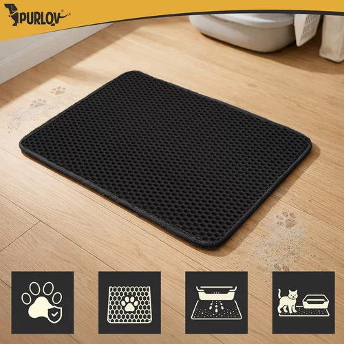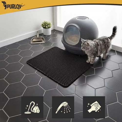 Vrei să ai în jurul toaletei pentru pisici în sfârșit ordine fără curățenie constantă? Această mochetă Purlov de dimensiuni 60 × 45 cm va captura litiera de pe lăbuțele pisicii imediat ce aceasta pleacă și va ajuta la menținerea podelei curate.