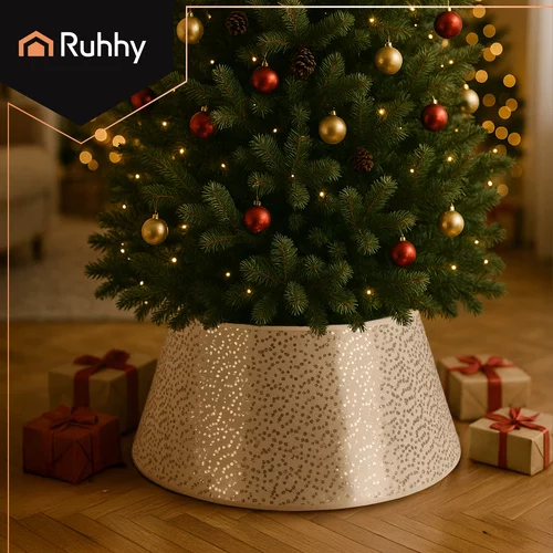 Ascunde suportul inestetic și oferă bradului de Crăciun un aspect perfect și estetic în câteva secunde. Husa RUHHY acoperă elegant suporturile metalice sau din plastic și menține ordine și armonie în jurul bradului. Datorită materialului rezistent și întreținerii ușoare, husa rămâne frumoasă de-a lungul multor sărbători, iar designul său universal se potrivește atât pentru brazii naturali, cât și pentru cei artificiali.