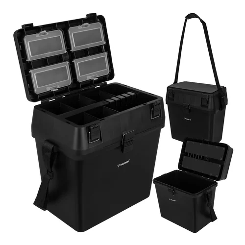 Cutia de pescuit 2 în 1 reprezintă soluția ideală pentru orice pescar care dorește să-și organizeze echipamentul într-un mod clar și să-l aibă mereu la îndemână. Designul inteligent combină organizatorul de depozitare și un scaun confortabil, oferind astfel un loc pentru a sta și suficient spațiu pentru uneltele și accesoriile necesare în timpul pescuitului. Dimensiunile compacte, greutatea redusă și curea de umăr facilitează transportul la apă și depozitarea acasă sau în mașină.