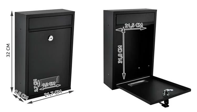 Cutia poștală robustă fabricată din otel zincat, care este rezistentă la rugină și va rezista multe sezoane. Are un orificiu acoperit pentru scrisori, care protejează conținutul de ploaie și umiditate, și un fereastră pentru adresă cu posibilitatea de a introduce un eticheta pentru numărul casei, apartamentului sau numele. Pe partea din față există, de asemenea, un vizor, care permite o verificare rapidă a conținutului. Pachetul include 2 chei, dibluri de montaj și garnituri din cauciuc pentru o instalare ușoară.