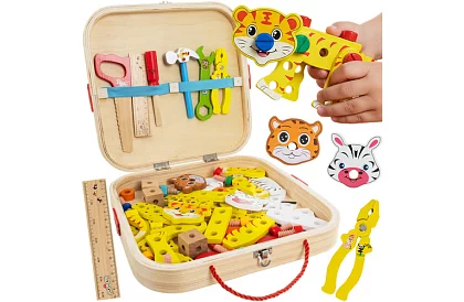 • Cutie de lemn cu unelte și animale - elemente de înșurubare