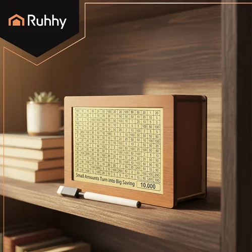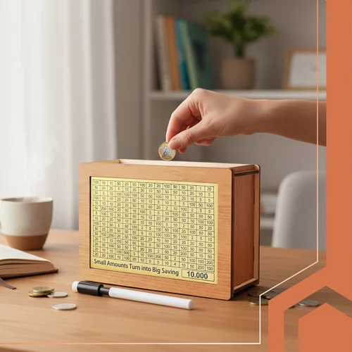 • Tabelă pe fața din față pentru urmărirea progresului economisirii