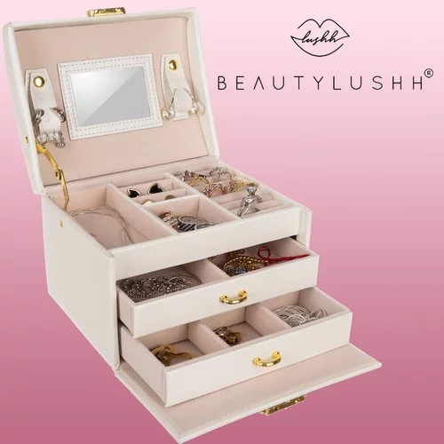 • Spațioasă: 20 de compartimente, 3 sertare retractabile și role pentru o organizare ușoară a bijuteriilor