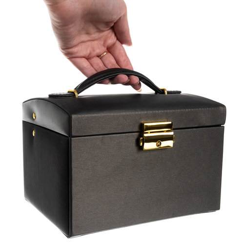 Cutia de bijuterii este o modalitate practică și sigură de a organiza și proteja bijuteriile, ceasurile, monedele și alte bunuri de valoare. Datorită 20 de compartimente, 2 sertare și role veți avea totul organizat. Lacătul cu cheie asigură siguranța conținutului, iar suprafața satinată și detaliile elegante conferă cutiei de bijuterii un aspect luxos.