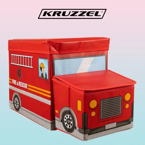 Cutia pentru jucării în formă de mașină de pompieri este alegerea ideală pentru micii fani ai vehiculelor de pompieri. Datorită designului colorat, potrivit atât pentru camerele băieților, cât și pentru cele ale fetelor, va deveni un accesoriu preferat în spațiul copiilor. Designul închis ajută la menținerea jucăriilor la locul lor și susține ordinea în cameră.