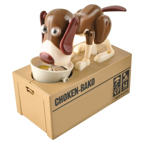 Datorită cutiei închise, monedele pot fi ușor scoase, îndeplinind astfel visul micilor economi. Tot ce trebuie să faci este să introduci moneda în bol și să o apesi – câinele va începe să „înghită” și moneda va aluneca în interior.