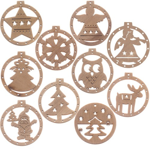 • Set de 10 decorațiuni din lemn cu motive de Crăciun