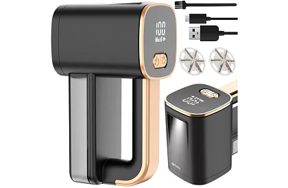 Practic rasă electrică pentru îmbrăcăminte, pulovere, tapițerie și pături cu ecran LCD și lumina LED integrată. Îndepărtează eficient puful și firele din diferite materiale fără a deteriora țesăturile. Funcționare fără fir și mâner confortabil asigură o utilizare ușoară, în timp ce ecranul clar arată nivelul de încărcare și modul de funcționare, permițând un tratament precis și sigur al textilului.