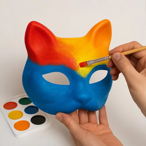 Setul creativ permite crearea de măști unice pentru pisici pentru carnaval, Halloween, aniversări sau pentru ateliere de artă. 6 măști cu stiluri diferite și accesorii susțin imaginatia, abilitățile manuale și jocul creativ. Imediat după deschidere, este gata de utilizare și permite pictura, lipirea și decorarea cu diferite tehnici – culori, markere, fetru sau blană.