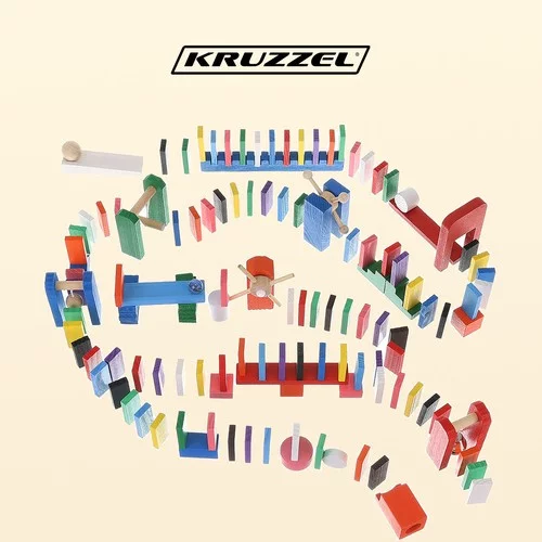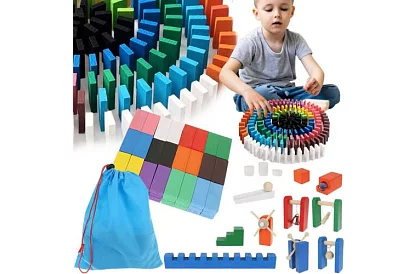 Setul mare de domino din lemn cu 407 piese aduce distracție nesfârșită pentru copii și întreaga familie. Cuburile colorate dezvoltă imaginația, creativitatea și abilitățile manuale, în timp ce elementele bonus precum mingile, leagănul sau toboganele duc joaca la un nou nivel. Setul include o geantă practică cu șnur pentru transport și depozitare ușoară.