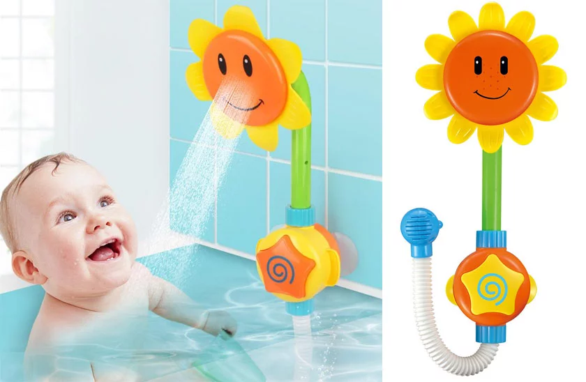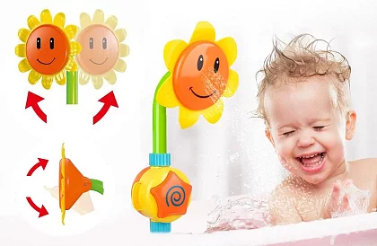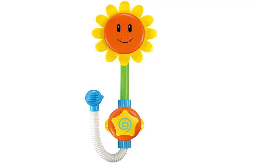Acest duș multicolor, cu design de floarea-soarelui, va fi pe placul atât al fetelor, cât și al băieților. Copiii se vor distra de minune cu floarea-soarelui nu numai în timpul băii zilnice, ci și în lunile de vară, când se zbenguie în piscină. Dușul funcționează pe un principiu mecanic, atunci când se apăsă pe buton, acesta atrage apa și începe să o pulverizeze.