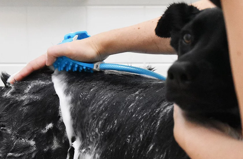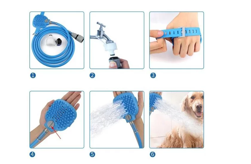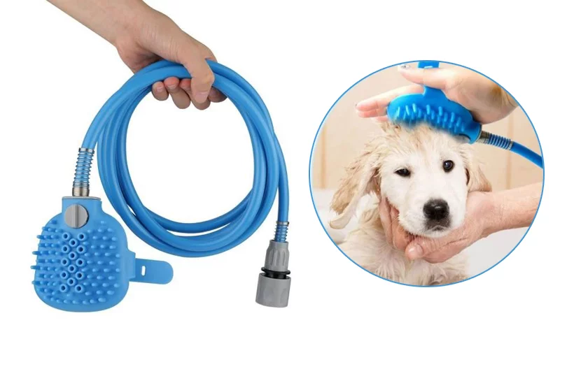 Oferiți animalului de companie un duș înviorător și, în același timp, un masaj excelent! Dușul se racordează la o sursă de apă sau la bateria din baie. Dușul este prevăzut cu o perie de spălat care are niște proeminențe ce masează plăcut pielea.