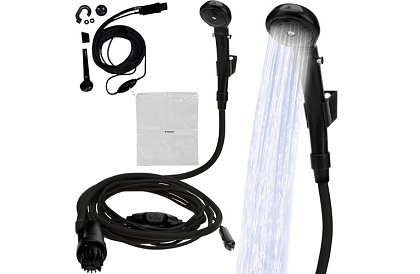 Dușul portabil de călătorie este un dispozitiv practic pentru turiști, călători și cei care campează, care doresc să se spele confortabil pe corp și vase în locuri fără duș tradițional. Datorită pompei cu debit mare de 3,5 l/min, puteți seta fluxul de apă exact conform nevoilor dumneavoastră – aproape ca acasă. Dușul este ușor de transportat, se instalează rapid și, datorită filtrului, apa rămâne curată. Include un suport suspendat, un cârlig dublu și o geantă, care servește ca rezervor sau husă de protecție.