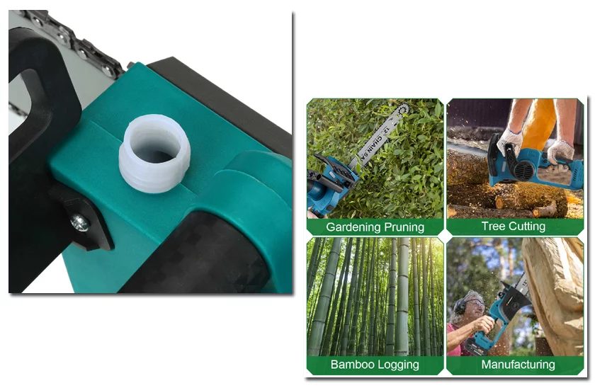 Acest fierăstrău cu lanț, cu acumulator, este ușor de utilizat, este silențios și, datorită întrerupătorului de siguranță, este și sigur. Ferăstrăul dispune de lubrifiere automată a lanțului prin intermediul unui recipient propriu de ulei. Pe lângă fierăstrău, pachetul include o tijă de ghidare - 12 inci (cca 30,4cm ), lanț, unelte necesare pentru asamblare și 2 acumulatori.