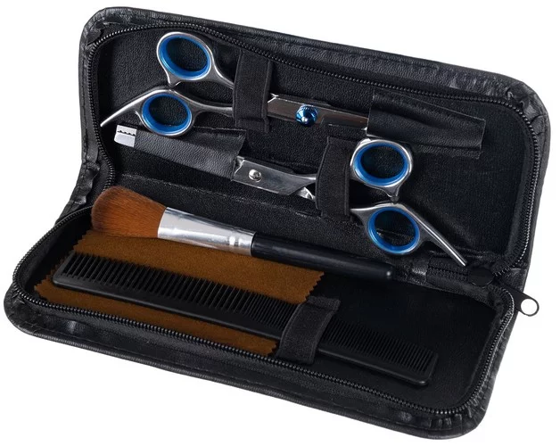 Set complet de unelte de coafură pentru utilizare acasă și profesională. Include tot ce este necesar pentru tăiere, umbrire și aranjarea părului, inclusiv o husă practică care păstrează toate uneltele organizate și în siguranță într-un singur loc. Potrivit pentru femei, bărbați și copii.