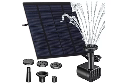 Bucurați-vă de o atmosferă liniștită și relaxantă lângă iaz cu o fântână solară decorativă, care funcționează complet pe energie solară. Fântâna oferă posibilitatea de amplasare flexibilă datorită cablului lung și aduce diverse efecte de jeturi de apă prin duze interschimbabile. Filtrul încorporat protejează împotriva poluării și asigură o durată lungă de viață a dispozitivului. Stabilitatea este asigurată de ventuze, care mențin fântâna fixă pe loc, iar utilizarea respectă normele de siguranță europene.